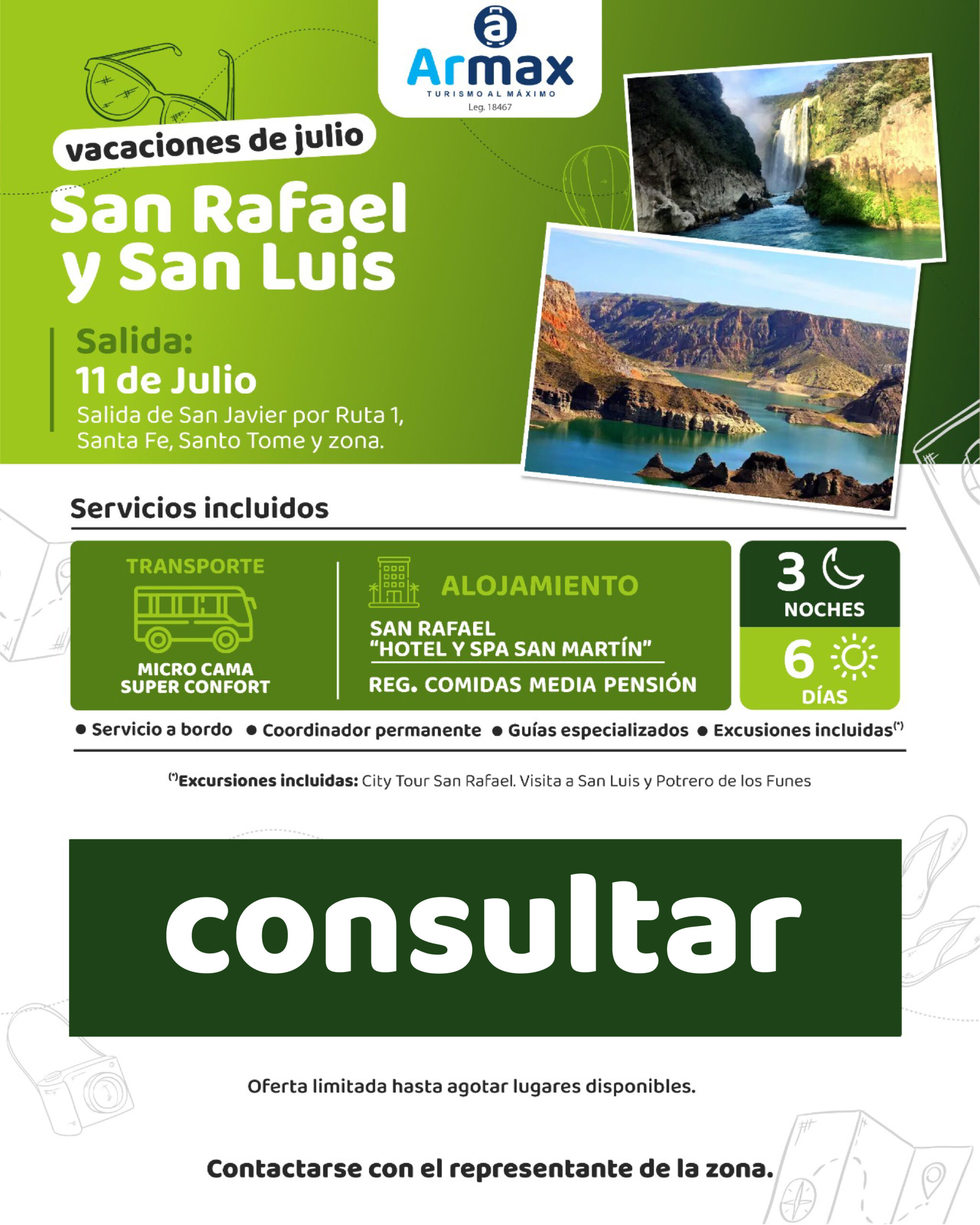 Próximas salidas San Rafael y San Luis Bariloche Salta Termas de Río Hondo Prepará tu próximo viaje Somos la mejor opción para tus vacaciones, viajes grupales y traslados. Ver más TURISMO ESCOLARES TOURS GUIADOS CONTACTANOS Y CONOCÉ EL MUNDO ARMAX CONTACTOS EMPRESA